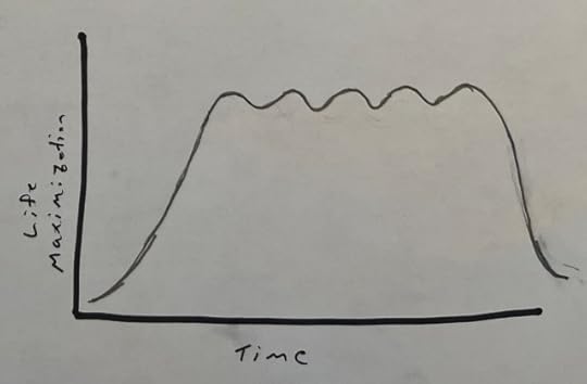 Life maximization could be like the high plateau, but the plateau is a sine wave of smaller ups and down. Maybe the life maximization graph is an evolving high plateau?