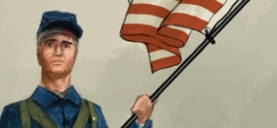 I've cooled off after yesterday's tirade. I guess I'm just a little tired of all the flag waving. The image above is from a cover of The Red Badge of Courage by Stephen Crane. One of the key scenes involves several standard bearers falling in battle until Henry, the protagonist, picks up the flag and leads his unit to victory. So much death just to keep a flag flying.