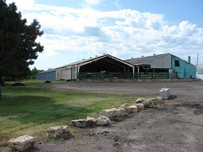 The factory building which inspired "Spider and I" is gone. Gone-gone. It used to be in front of the ugly sheds in the picture above.