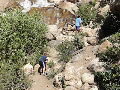 Max and Owen showed me how to scramble on the rocks near a waterfall. Going down was easier than up.