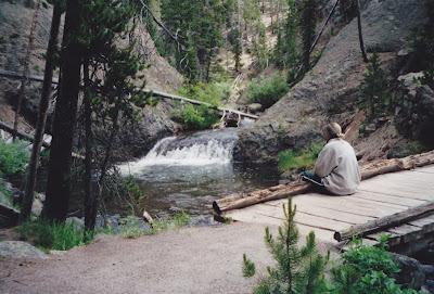 In 2000, Aimee and I took a trek to Yellowstone National Park, otherwise known as "Disneyland of National Parks," meaning it's rather crowded and overflowing with RVs. Yes, we drove to Yellowstone in my tiny Honda Civic (and that, my friends, was quite a road trip). We brought most of our food in a big cooler. We camped for a week and found plenty of less-traveled paths (with the help of a few nice park rangers).