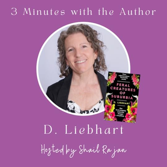 I wish I could take credit for the title of this week's episode of 3 Minutes with the Author, but I can't. There was no chance I could come up with anything better than the superb title of my guest D. Liebhart's sophomore novel FERAL CREATURES OF SUBURBIA. D., a nurse-cum-novelist draws on real events and situations as her starting point and never shies away from controversial topics. A great book that you can sink your teeth into sounds like the perfect summer read! Feral Creatures of Suburbia is available for pre-order and will release on July 27th.
