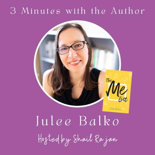 This week on 3 Minutes with the Author, I had the absolute pleasure of chatting with Julee Balko about her new book THE ME LIST. She was a hoot and a holler to talk to, and if I was handing out awards for best answers to the "this or that" section of this interview series, it would go to Julee! Her response to whether she preferred series or standalones was perfect!