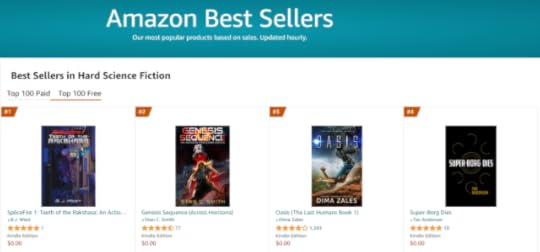 I’ve been giving away the Kindle version of my book for free all week. I was really pleased that my book started making several of Amazon’s free Top 100 lists, and reached #4 on the Hard Science Fiction list. They have dozens of sub-genres just for sci-fi. Besides Hard Science Fiction the other two lists that I regularly showed up in the top 20 were, Science Fiction Action, and Dystopian Science Fiction. (As a total side note, there is a lot of romance/erotic fiction in almost all of the subgenres lists on Amazon and I find it somewhat childishly ironic that Hard Science Fiction was one of the categories that did not. (Yes, I’m immature.))