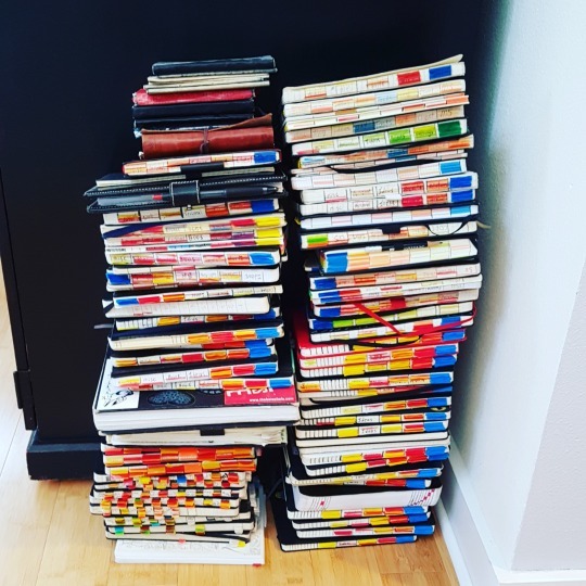 I still use my trip-colored flags to denote the different pages and action items, and I still take notes the same way (just not as many). Now instead of going through a notebook every six to eight weeks, a single notebook lasts me six to eight months.