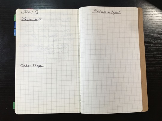 I removed the hourly breakdown, mostly because my schedule changes so much every day. I usually have multiple conflicting meetings, meetings regularly change, and relying on Outlook was just a much better than trying to update the schedule in my notebook.