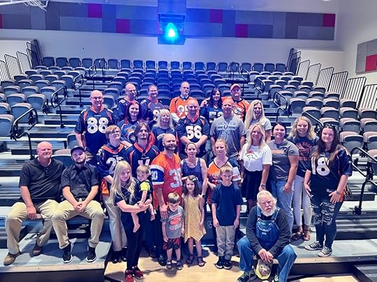 After the pastor settled us in and my nephew kicked things off with a tribute song, I went to the podium to share some memories. But, before I shared my memories, I informed the audience that I was wearing a Broncos shirt for the first time. (Side note, I never liked or rooted for the Broncos even when I lived in Colorado.) I also made sure to mention that while I wouldn’t be rooting for the Broncos anytime soon, I did plan to wear my Broncos shirt again (in her honor.)