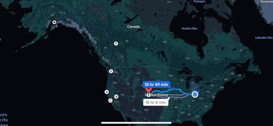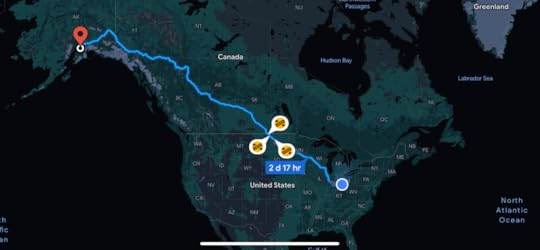 “Yeah, crazy.” I said thinking about another crazy idea. “The only other solution I could think about would be for someone to drive it there, so I googled it. Turns out, it’s almost four thousand miles of desolate driving mostly through Canada.” I continued quickly, not stopping for her response. “FOUR THOUSAND MILES. Can you believe that? And almost nothing to see along the way.” I continued. “That doesn’t seem like a fun time at all.”