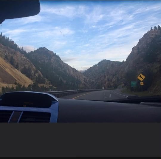 The sun was rising on our backside as we continued west. The highway moved quickly as we rose into the mountains. Beautiful, evergreens lined the view along with shades of jagged gray stone that looked as if a giant toddler had tossed them around and left them sitting in their unnatural spot strewn across the landscape. The curves in the wide gray road were sharp and lined the river as the blue and clear waters cascaded over the rocks and around the bend.