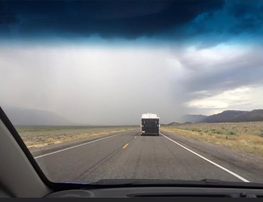 This forced us to slow down to about 45 mph as we were sure to maintain a safe pace while not stopping completely even though we wondered if we should. We were persistent, if nothing else, as we continued down this desolate highway. The rain stopped and the sky became blue just as quickly as it had filled with water and mist.