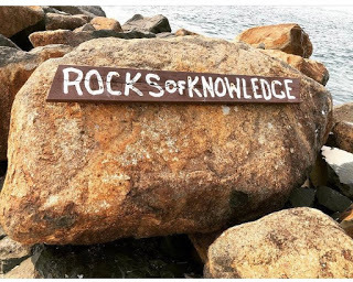 Rocks of Knowledge certainly gave us reason for introspection. Large boulders as they were, they appeared intimidating but to walk up to them and feel their rough exterior puts us physically in touch with their alive vulnerability. Their atoms are continually being pummeled by wind, sun, spray of the ocean and are being changed constantly into something finer, smoother yet equally powerful. Sand. Rocks take eons to evolve into sand but evolve they do.