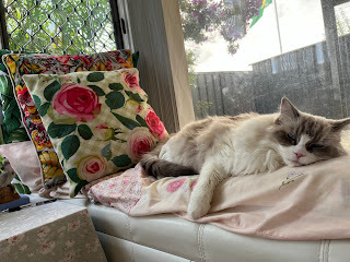 Bonus pic of Maisie Moonlight happily ensconced on my reading bench, happy to be back home after her holiday at the cattery.