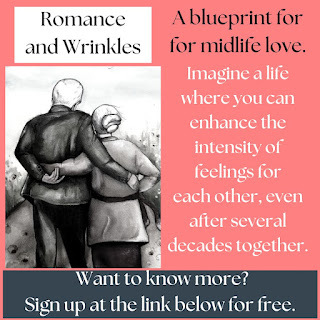 As a complementary and complimentary side project, I started a midlife-love experiment late last year called, Romance and Wrinkles. The idea is to re-invent our relationship in our mature years, although younger couples can use the same model.