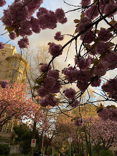 On our first morning walk we marvelled at the green grass, bright flowers and lush cherry blossoms, knowing we'd left a screaming blizzard behind us. That was just the beginning of our daily outings spent walking up to 20,000 steps a day!