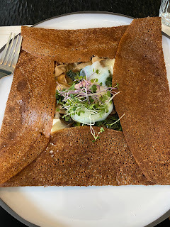 View from The Sandbar Seafood RestaurantVancouver is home to incredible restaurants and we soon found our favourites: The Happy Noodle on Davie Street serves handmade noodles and amazing stir fries. Spicy green beans were one of our favourites. The Sandbar Seafood Restaurant on Granville Island boasts stunning waterfront views of Vancouver at night and serves the freshest, tastiest seafood. I also enjoyed a mouthwatering lobster and shrimp risotto at Ancora another gorgeous oceanfront restaurant that serves Japanese/Peruvian cuisine and looks out onto a marina of luxury yachts and across to Granville Island.On our final day in Vancouver we discovered another gem of a restaurant—Ca Marche Creperie, hidden away under the Granville Street Bridge. Their specialty is savoury buckwheat pancakes. I had the mushroom pancake, which is filled with sautéed mushrooms cider onion jam, asparagus, goat cheese and a perfect soft-boiled egg. They also serve the most decadent dessert pancakes—strawberry, caramel apple, salted caramel served with buckwheat ice cream. After all that eating it's good that we were walking so much!!