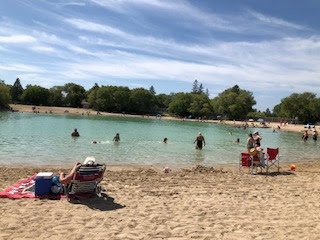 OTTER FALLSAbout 30 mins from the petroforms we stumbled on a perfect sandy beach on the shore of Margaret Lake. We parked the car for a picnic. It was a sweltering day at 30C so I took a welcome swim in the pristine waters. With only four or five other people on the beach it was like a little slice of heaven.