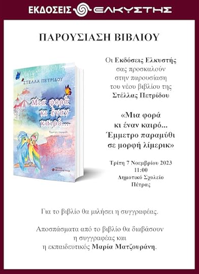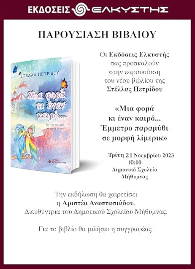 Παρουσίαση του παραμυθιού "Μια φορά κι έναν καιρό... Έμμετρο παραμύθι σε μορφή λίμερικ" της Στέλλας Πετρίδου στη Μήθυμνα Λέσβου