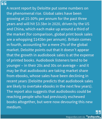 Audiobooks are definitely a thing. A thing related to, but separate from traditional books, but also eBooks too.