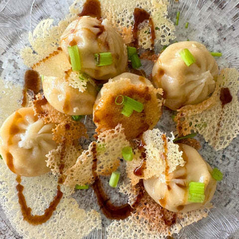Currently Enjoying: Soup Dumplings with a SkirtEarlier this month, on my birthday, my husband and I were at Trader Joe's, and I couldn't resist grabbing a box of frozen chicken soup dumplings after seeing a Facebook reel. I had never tried dumplings before, so at the ripe old age of 49, I decided to give them a go.