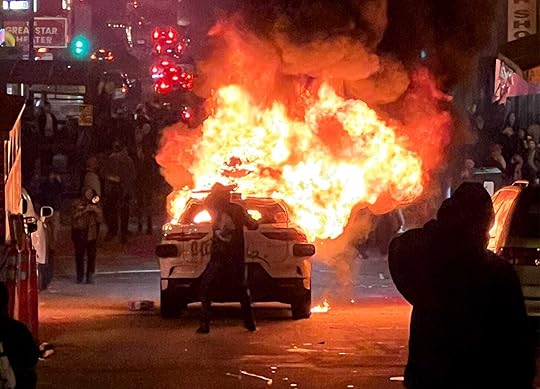 This was San Francisco last month, where a crowd set a self-driving taxi on fire. A taxi made by Waymo.