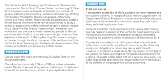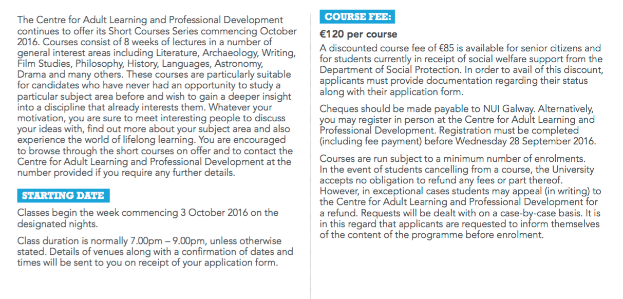 You can read more in the NUI Galway Adult Education Short Course brochure.