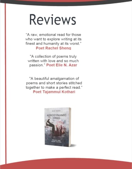 Working on my press/media kit for book fair submissions and wanted to share the image of some of the reviews from my book Aerodynamic Drag: Poetry and Short Fiction. Check it out below if you haven’t read it yet! Also, let me know if you are interested the creation of a press/media kit and I can create a post about the process.
