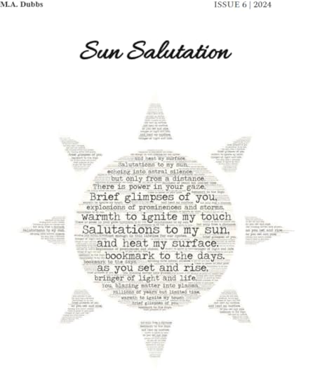 Also out on May 1st is Cosmic Daffodil’s latest publication Ying and Yang. I have two poems in this publication “Sun Salutation” and “Moon Salutation”. These poems are both concrete poems in the shape of a sun and moon, respectively, along with an easier to read format following each one. I made this using Word Art (select customize). I have a Religious Studies minor and really enjoyed my courses learning about Daoism. Ying and Yang is about balance and when the call provided some examples, such as masculine and feminine, I remembered yoga. Sun and Moon Salutations are a flow of yoga moves which a yogi explained to me explore the masculine and feminine energies of our bodies and the earth. I made a concrete poem to showcase how much is held within a shape, just like how much is held within our bodies during yoga. I think they came our pretty nice!