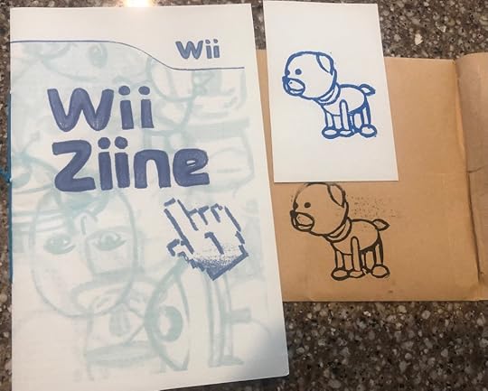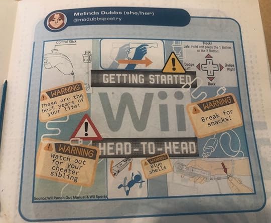 The second picture shows my digital collage which I made out of Wii instruction manuals. It was a fun project! I loved the Wii as a teen (I even re-created my Mii for the author picture which was a great idea from Morgan)! You can read this digitally online! If you want a physical copy, reach out to Morgan on their Instagram (copies are pay-what-you-can).