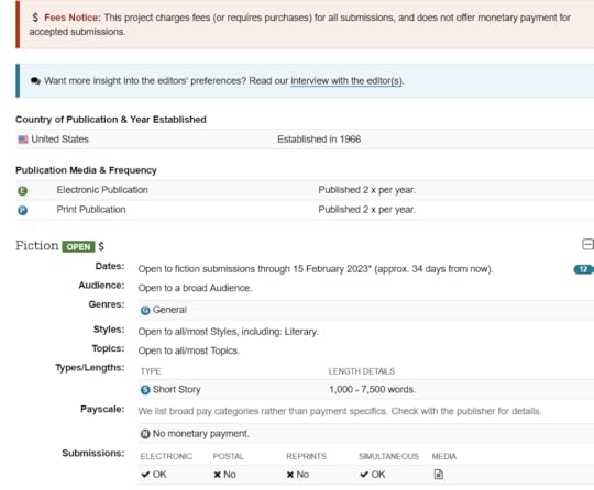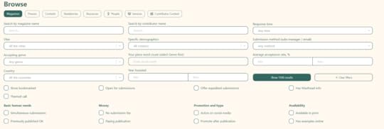 I used The Grinder for a bit but, again, it struggles with helping me discover new publications. You can get detailed (not as much as Duotrope, but it is free) when trying to find a good submission for a piece.