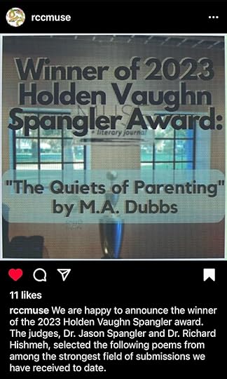 This afternoon I learned that my poem “The Quiets of Parenting” won the 2023 Holden Vaughn Spangler Award “The Quiets of Parenting”! I was beyond thrilled and just so happened to open the email while I was right next to my little muses, my girls. The award is started in 2018 through RCC Muse and is in memorial for a child lost too soon. I think the award is a beautiful tribute and memorial in his memory and am honored that my writing could live in his memory.