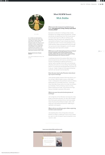 My interview with Heartland Society of Women Writers is now live on their website. I talk about the inspiriation behind my book Aerodynamic Drag: Poetry and Short Fiction along with Indiana roots. You can read the interview here: https://hlwomenwriters.wordpress.com/madubbs/