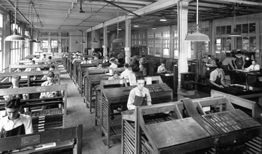 Fuhrmann notes that he is writing about his craft in a time of deep disruption. The Linotype had been patented only 40 years before. Rotary presses and dry stereotyping came about the same time. Paper made from pulp came not long before. Thus the business of publishing changed greatly, becoming a mass medium. In the shop, all these technologies spread and robbed the craftsman — whose heritage was in centuries of hand composition and hand presses — of their sense of control of their art.