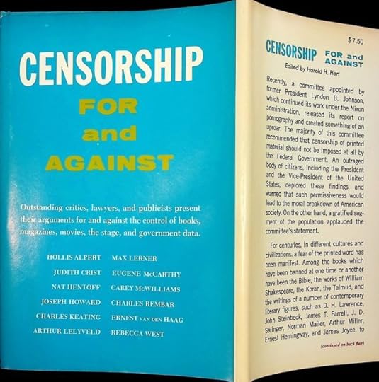A week ago, as part of my research on the Gutenberg age, I made a pilgrimage to Oak Knoll Books in New Castle, a hidden delight that offers thousands of used books on books. On the shelves, I found the 1970 title, Censorship: For and Against, which brought together a dozen critics and lawyers to react to the fuss about the so-called smut commission. I’ve been devouring it.