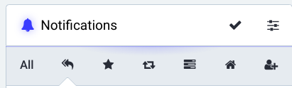 **New tip, thanks to my new Mastodon friend, Maxi5X, who pointed me to the notifications setting for the quick filter bar. That’s the menu bar atop the column. Set the second choice to display all categories…