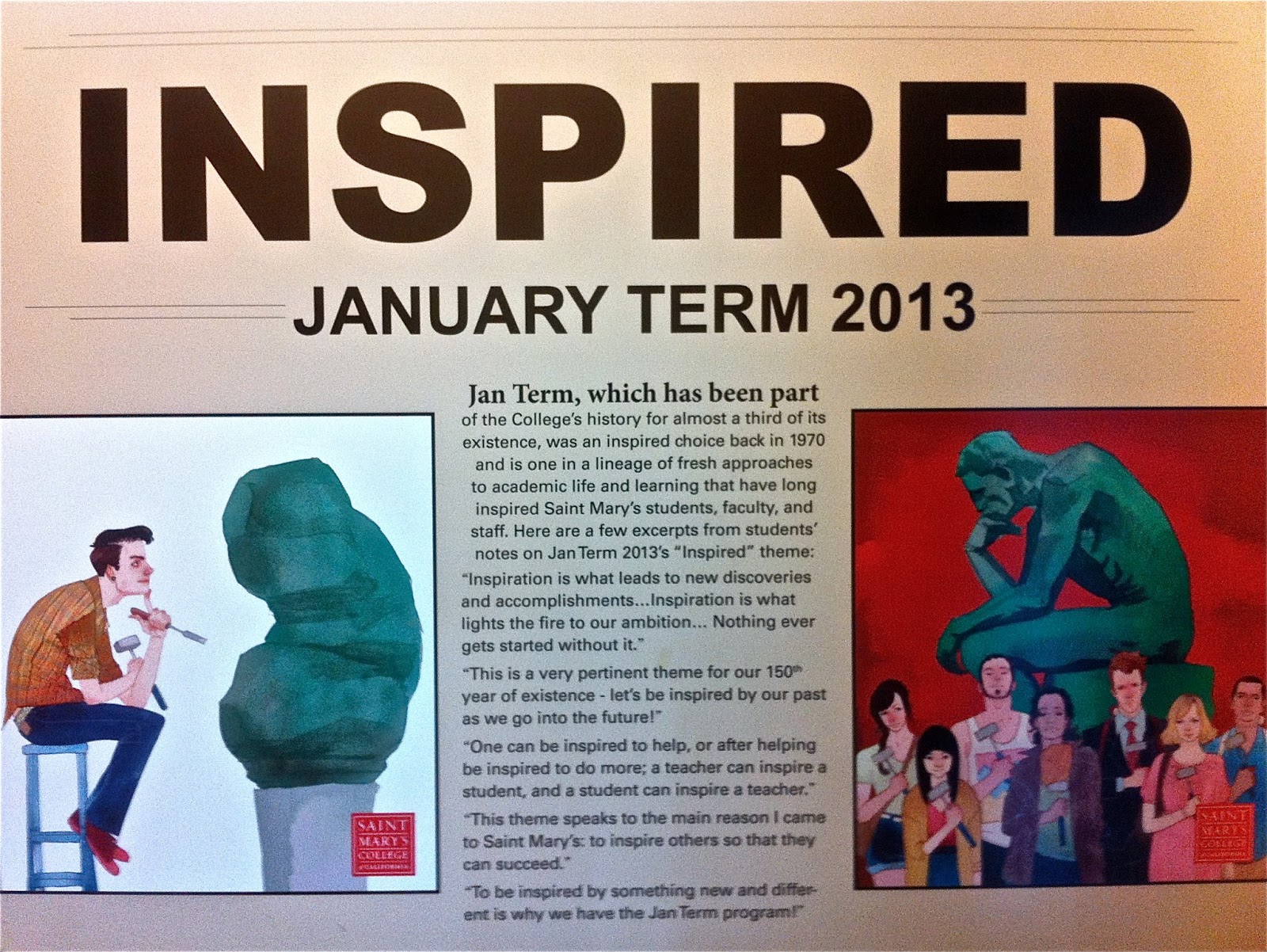 I've just finished a month of teaching "Race, Culture, and Power in Children's and YA Books" during Jan Term at Saint Mary's College of California . As the college-wide theme this year was Inspired (see above), I asked students to create picture books by fulfilling two requirements: (1) they were required to write fiction featuring a "hero's journey," and (2) they needed to explore an aspect of race, culture, or power.