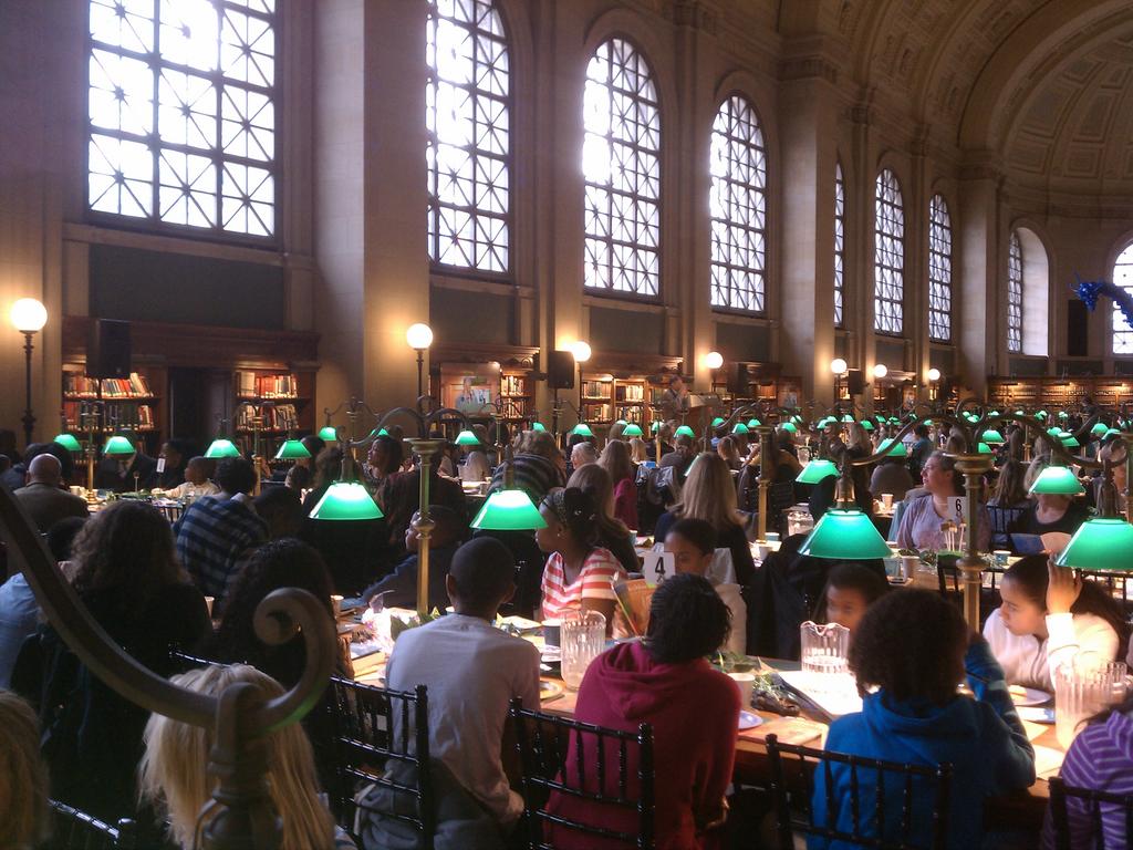 The Bates Reading Room in the Boston Public Library was packed (photo courtesy of Newton South High School's Denebola newspaper staff):