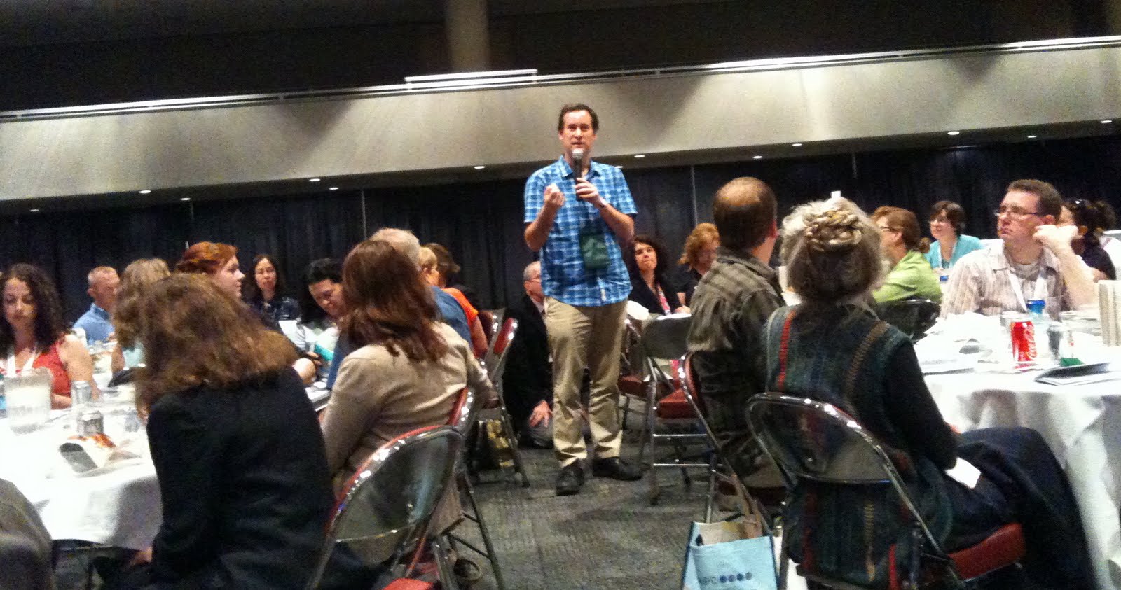 Author-Illustrator Chris Myers waits for our panel at the Institute. He also keynoted, as did author Jacqueline Woodson.
