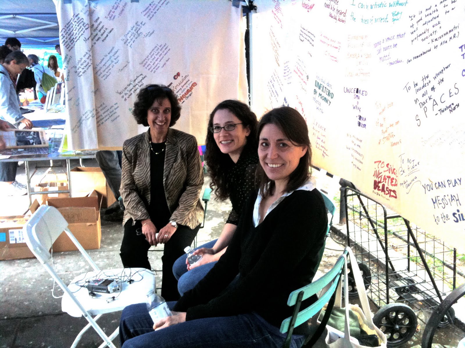 Susanna Reich, Mikki Knudsen, and Rebecca Stead chatting in...