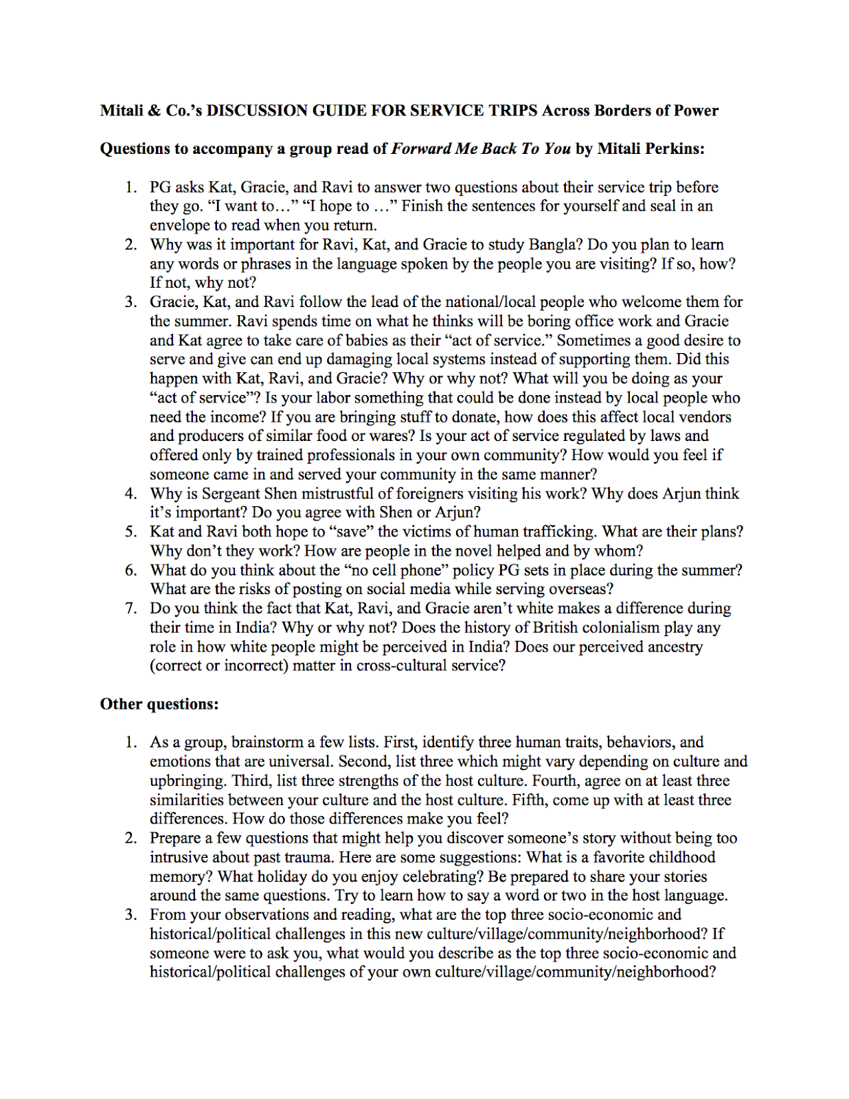 Mitali and Company's Discussion Guide for Service Trips Across Borders of Power