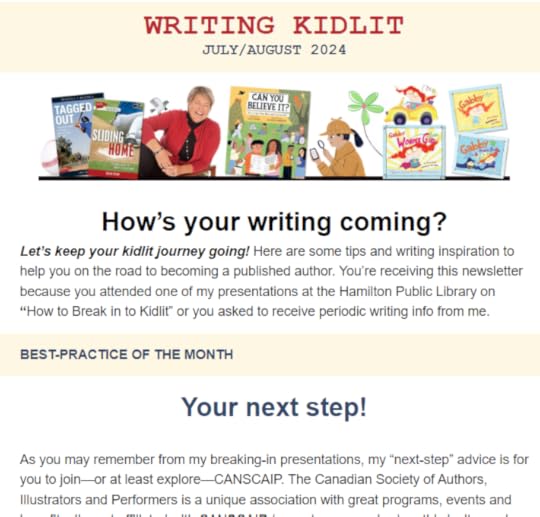 Sign up now and I’ll send you the July/August 2024 edition, chock full of inspiration and tips to help you on your journey to becoming a published children’s author. This edition covers the mysterious #mswl hashtag, the one thing the adults in your children’s book should absolutely not do, my number-one best piece of advice on taking your next step in kidlit.