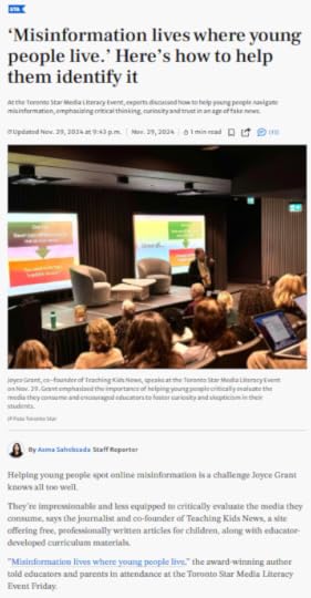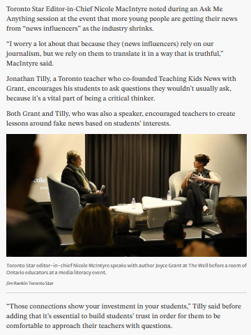 Join me on Friday, Nov. 29 for a media literacy event for educators. I’ll be talking about what I’ve learned from the past 8 years talking to young people about journalism and misinformation. My TeachingKidsNews.com co-founder, Jon Tilly, will provide a teacher’s perspective. And we will have an AMA with Toronto Star Editor-in-Chief, Nicole MacIntyre.