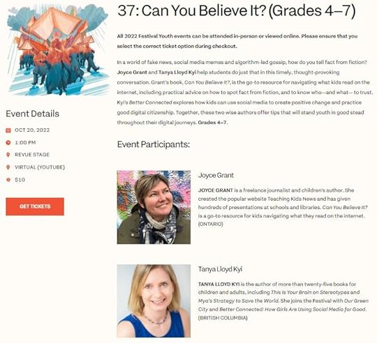 I’ll be at the Toronto International Festival of Authors for a mid-afternoon workshop aimed at younger readers. I’ll take questions from the audience and talk about how to spot fake news!