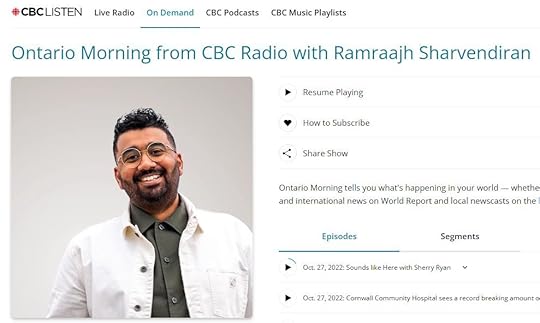 The post Link to my chat with Ramraajh Sharvendiran, CBC Ontario Morning appeared first on Joyce Grant, Author.