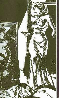 her father, District Attorney Owen Patrick. Since the Hollywood beauty suspects that a powerful state political machine was responsible for her father’s assassination, she targets high-society crime exclusively, hoping to bag a big shot. In the tradition of pulp heroes of that era, she left behind her calling card, which read Compliments of the Domino Lady. That famous masked protector of Old California, Zorro, would have recognized her M. O. instantly. Ellen packed an automatic, a hypodermic loaded with knockout serum, and her feminine wiles as she plunges into the social webs of extortion and murder, often teaming up with up-and-coming private investigator Roge McKane, more frequently tangling with suave big-game hunter turned blackmailer, Rob Wyatt, who is her recurring Nemesis. Or is it the other way around?