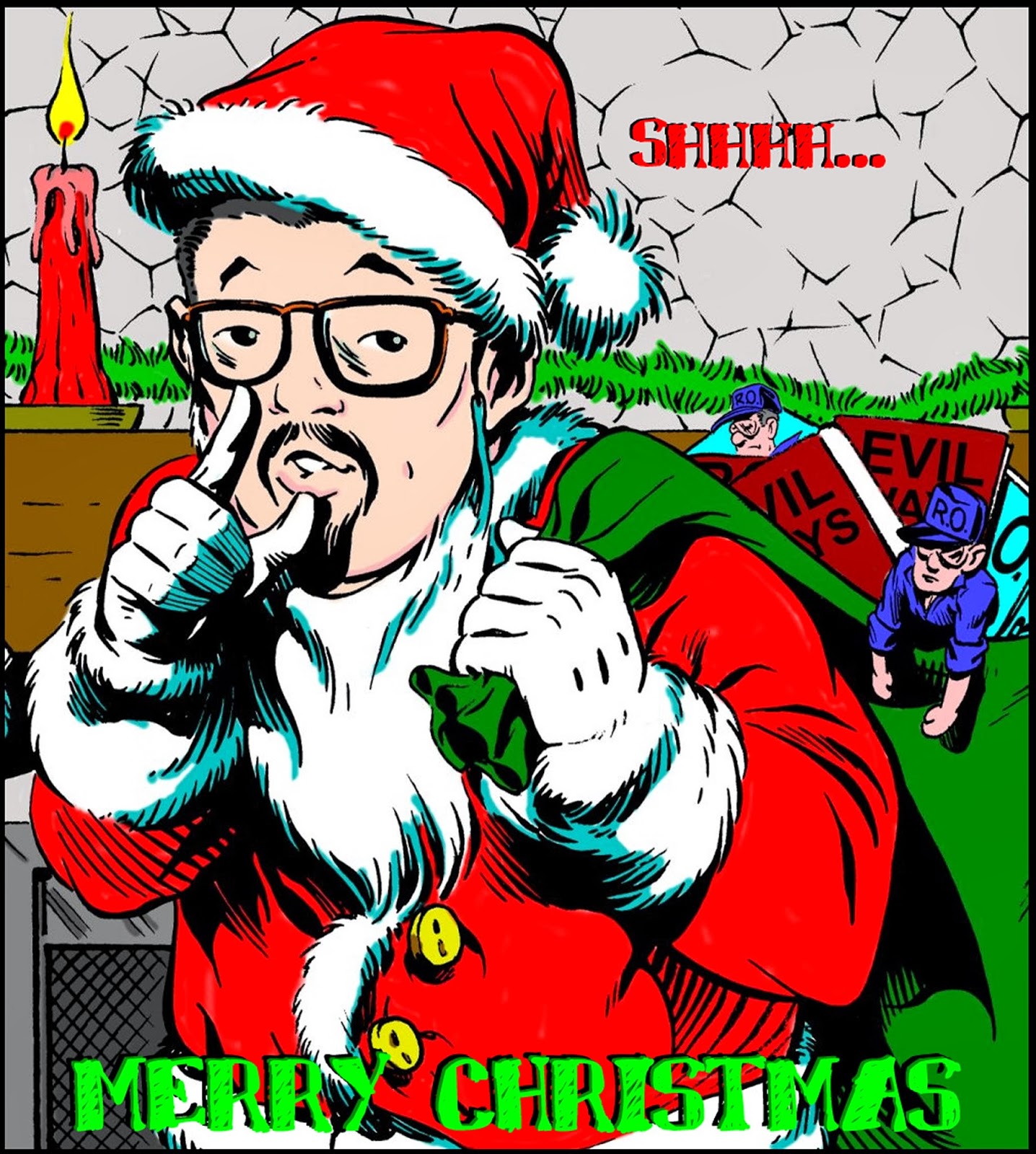 Front side of an old Christmas promotional postcard. Art: Jeff Austin