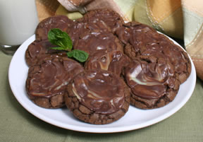 6. Remove the cookies from the oven, and on top of each cookie, place half of an Andes Mint. Allow the mint to melt and then swirl with the back of a spoon.