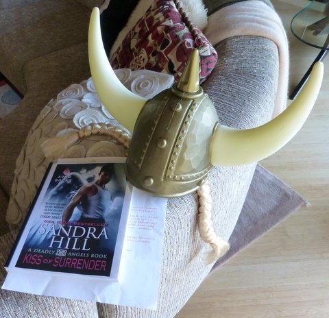 Love the surprise I received in the mail…Sandra Hill’s latest, along with an essential fashion accessory. Can’t wait to jump in. KISS OF SURRENDER–check it out. Sandra is always entertaining!