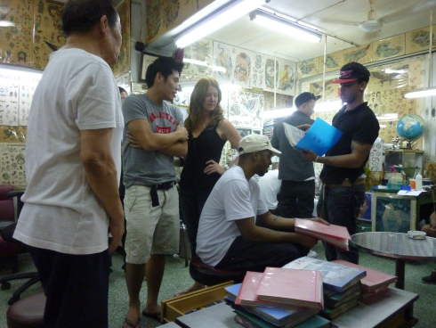 So this is me in Hong Kong in a tattoo parlor with navy guys. That's all I can tell you, otherwise I would have to kill you. Best caption entry gets a free autographed book!