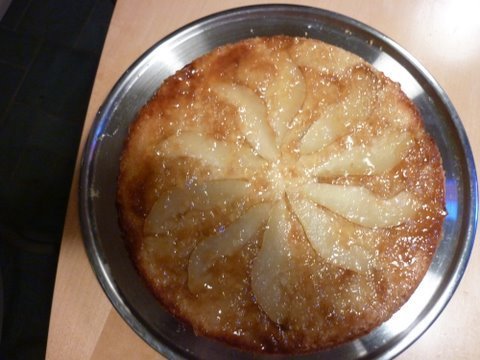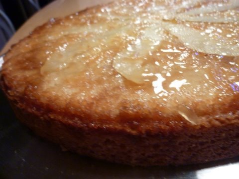 This is as yummy as it looks and ridiculously easy. You can blame my friend Suz. She has this recipe you can adapt to any fruit or flavoring. All you need is a little imagination and a spring-form or tart pan. If you do not have either of these, fie on you. Your life is not complete. I customized the recipe by placing pear slices in the bottom of the pan. After baking, brush the hot cake with ginger preserves, warmed in the microwave. Voila!