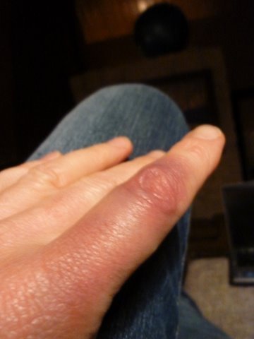 It's not. It's a pool table injury. I should stay away from that hazardous sport. Hurts like a muh-thuh. And yes, I am left-handed. Thank you for asking.